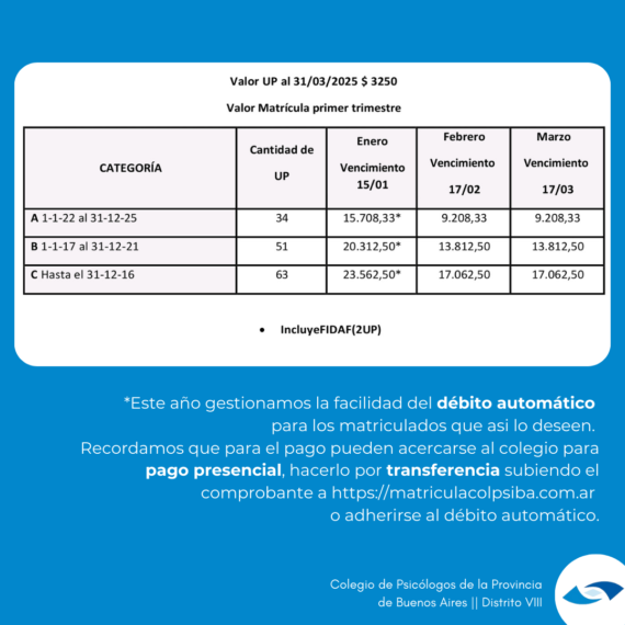 El pasado sábado 14 de diciembre aconteció la reunión plenaria mensual del Consejo Superior del Colegio de Psicólogas y Psicólogos de la Provincia de Bs. As. en la ciudad de La Plata, donde cada Distrito votó según su análisis porcentual en base a la inflación, suba de servicios y cargas sociales.