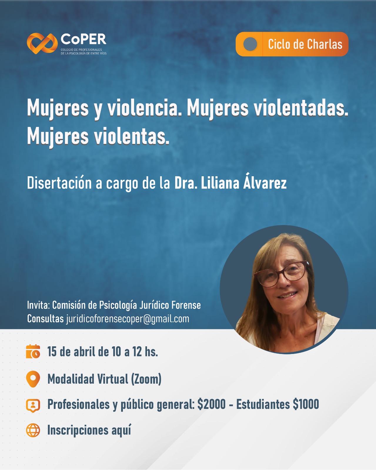 Jornada de formación, organizada por la Comisión de Psicología Jurídico Forense del Colegio de Psicólogos de Entre Ríos. Se llevará a cabo el día Sábado 15 de Abril de 10.00 a 12.00 hs por la plataforma Zoom. Disertante: Dra. Liliana Álvarez Inscripción: https://forms.gle/T76WRBXKqXbSESFL9 -Arancel: $ 2000 para profesionales y público en...