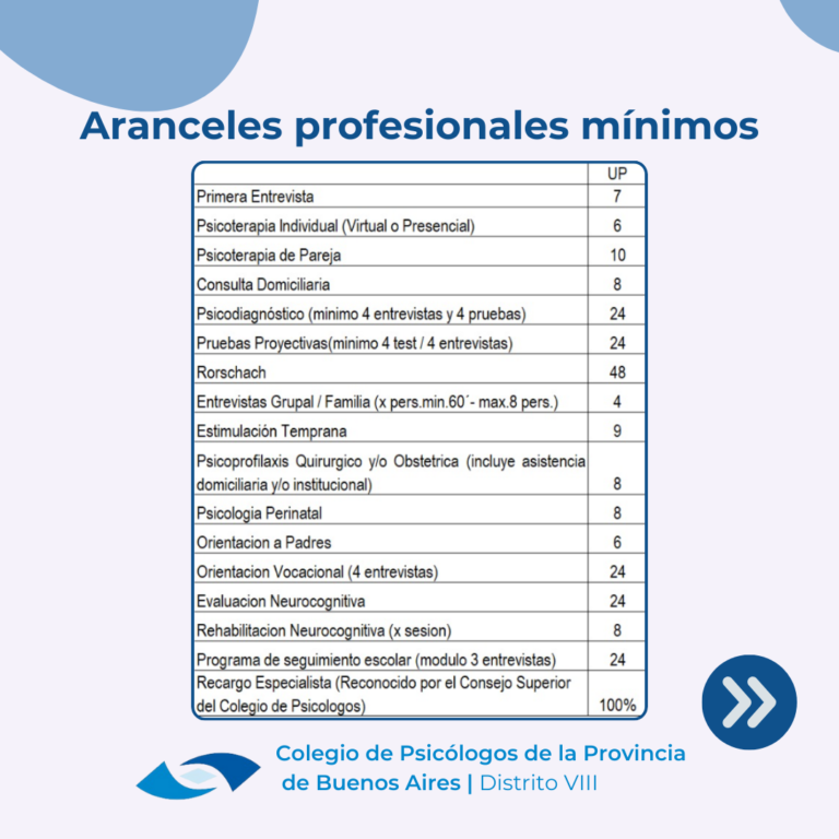 El Consejo Superior decidió que el mínimo ético sugerido para las prácticas de psicoterapia individual (virtual o presencial) se mantenga en 6 UP.