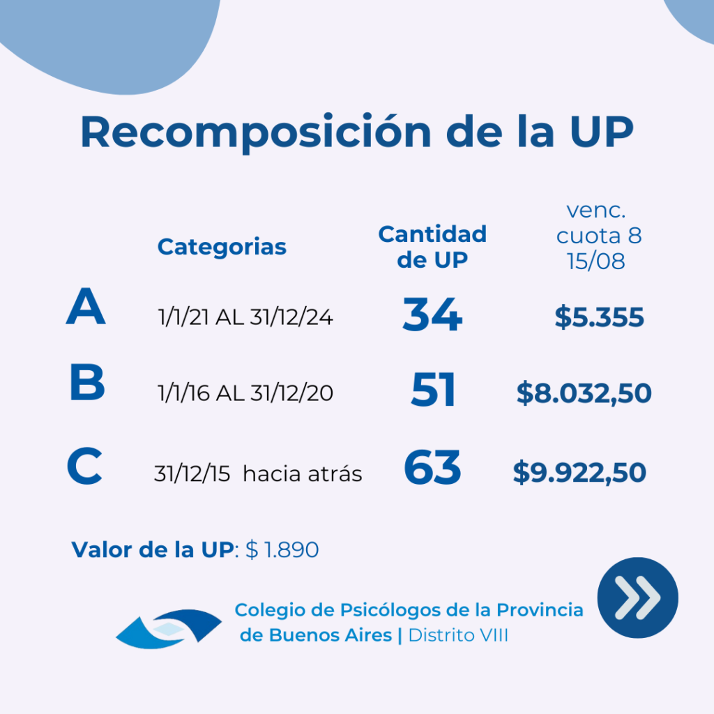 La UP se utiliza como base para calcular los honorarios de los/as psicólogos/as.